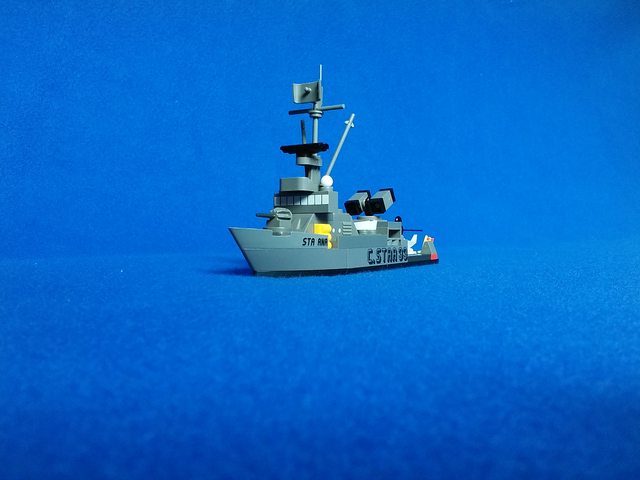 Menudo pequeñín, bonitas líneas y muy equilibrado, el juego que está dando el lanzamisiles jejeje.... el cañón principal aunque bien proporcionado tiene alto que no termina de convencerme, enhorabuena, no serán muchos barcos pero por calidad ganan  ;D