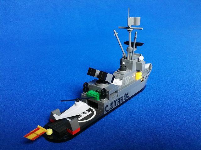 Como ya os dije consta de 7 buques, Corbeta, Fragata, Destructor, Acorazado, Portahelicopteros, Portaaviones y Buque logistico.