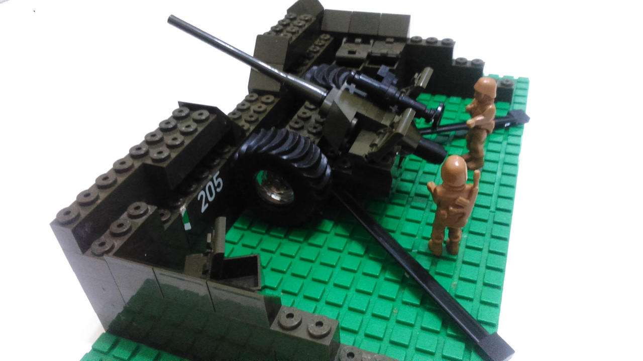 Muy guapo, me encanta, que buen uso le has dado a las aspas de helicóptero y el cañon se sobra, con pocas piezas, se pueden hacer verdaderas maravillas, ¿de donde has sacado las gomas de los neumáticos?