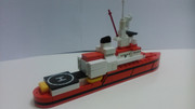 Bueno , bonito barco, parece un rompehielos no? ... Como molan las posicion de las piezas blancas que estan al lado del helipuerto... felicidades...