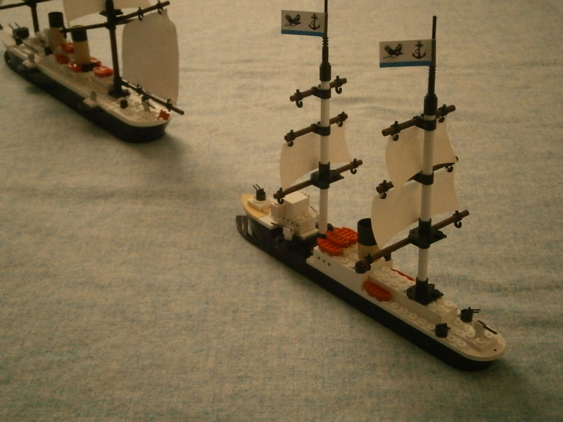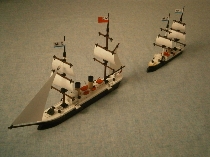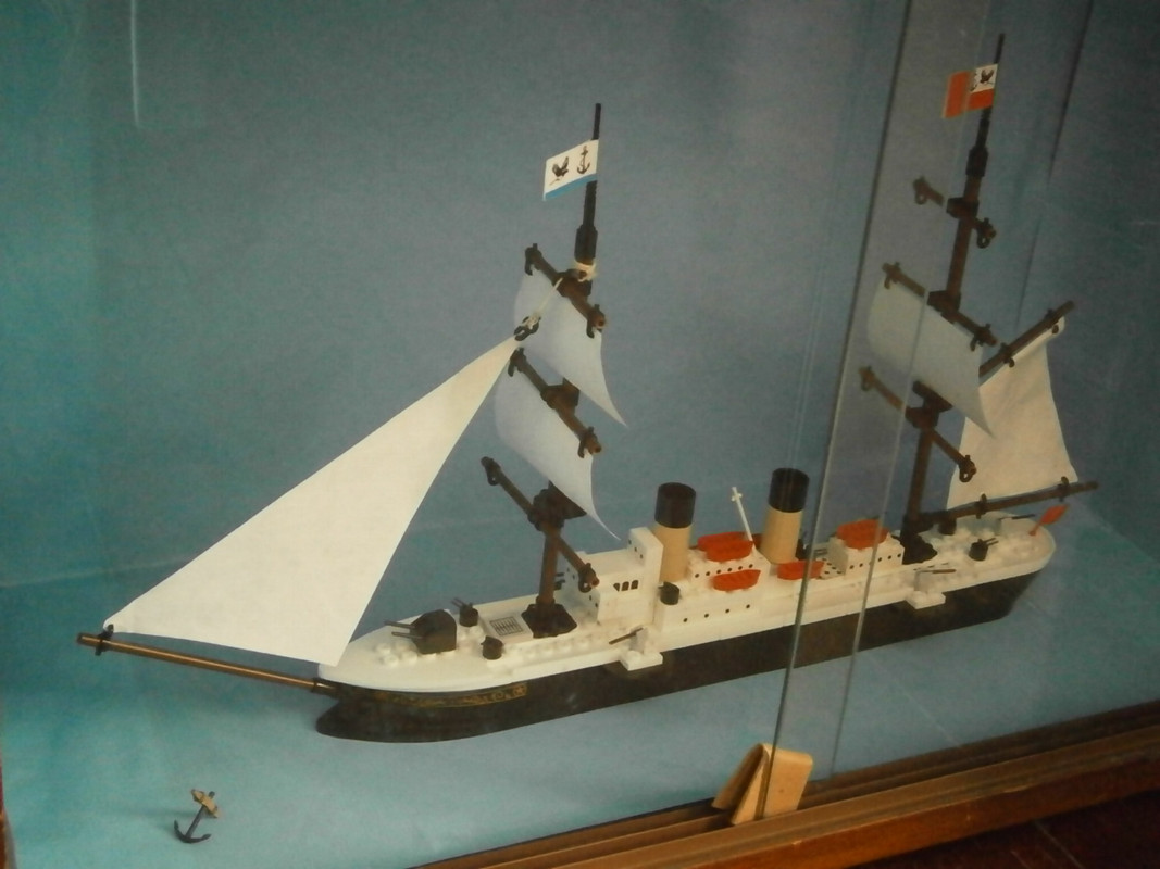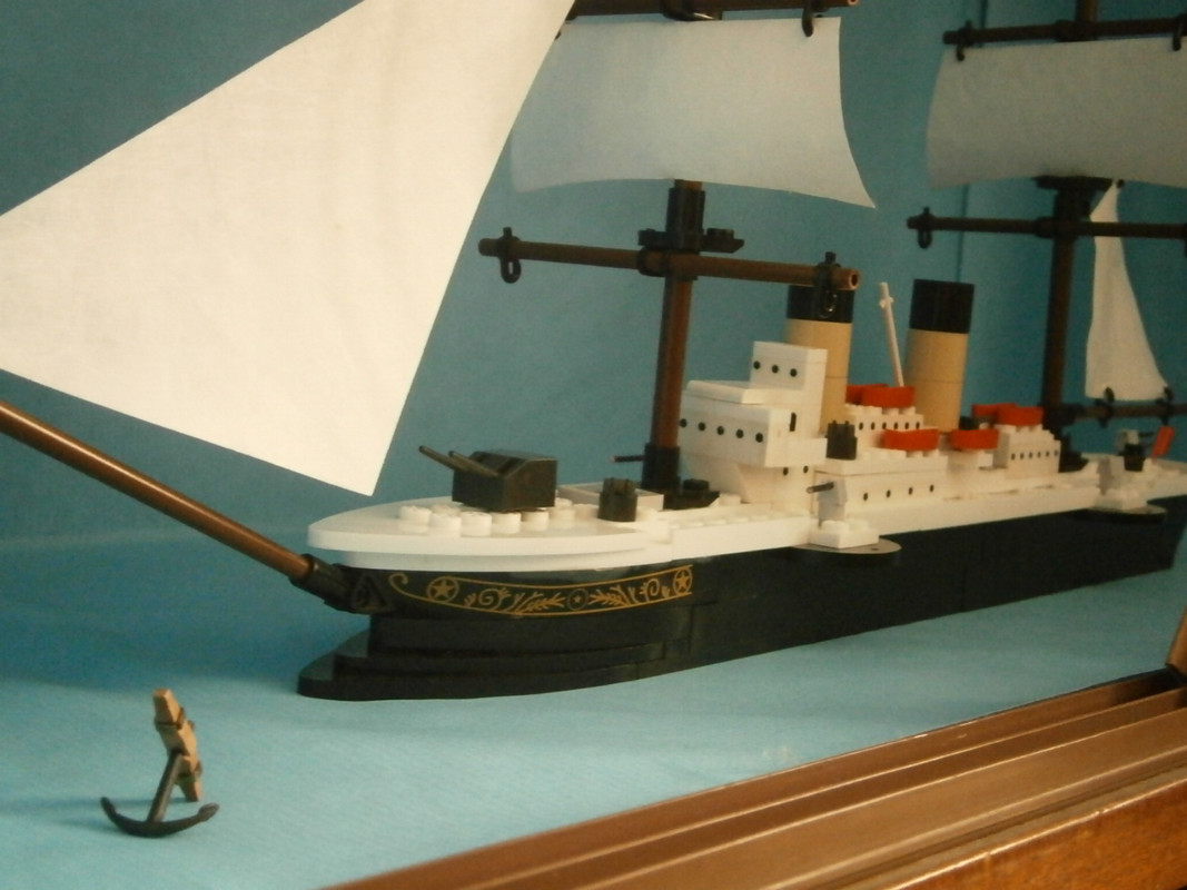 El diseño está basado (de aquella manera ::)) en el crucero ruso General Admiral: https://es.wikipedia.org/wiki/Crucero_General_Admiral_(1873), pero con un armamento más próximo al del Varyag, algo posterior: https://es.wikipedia.org/wiki/Crucero_Varyag. Una especie de popurrí de dos estilos de construcción, pero que al final quedó bien y todo jaja .