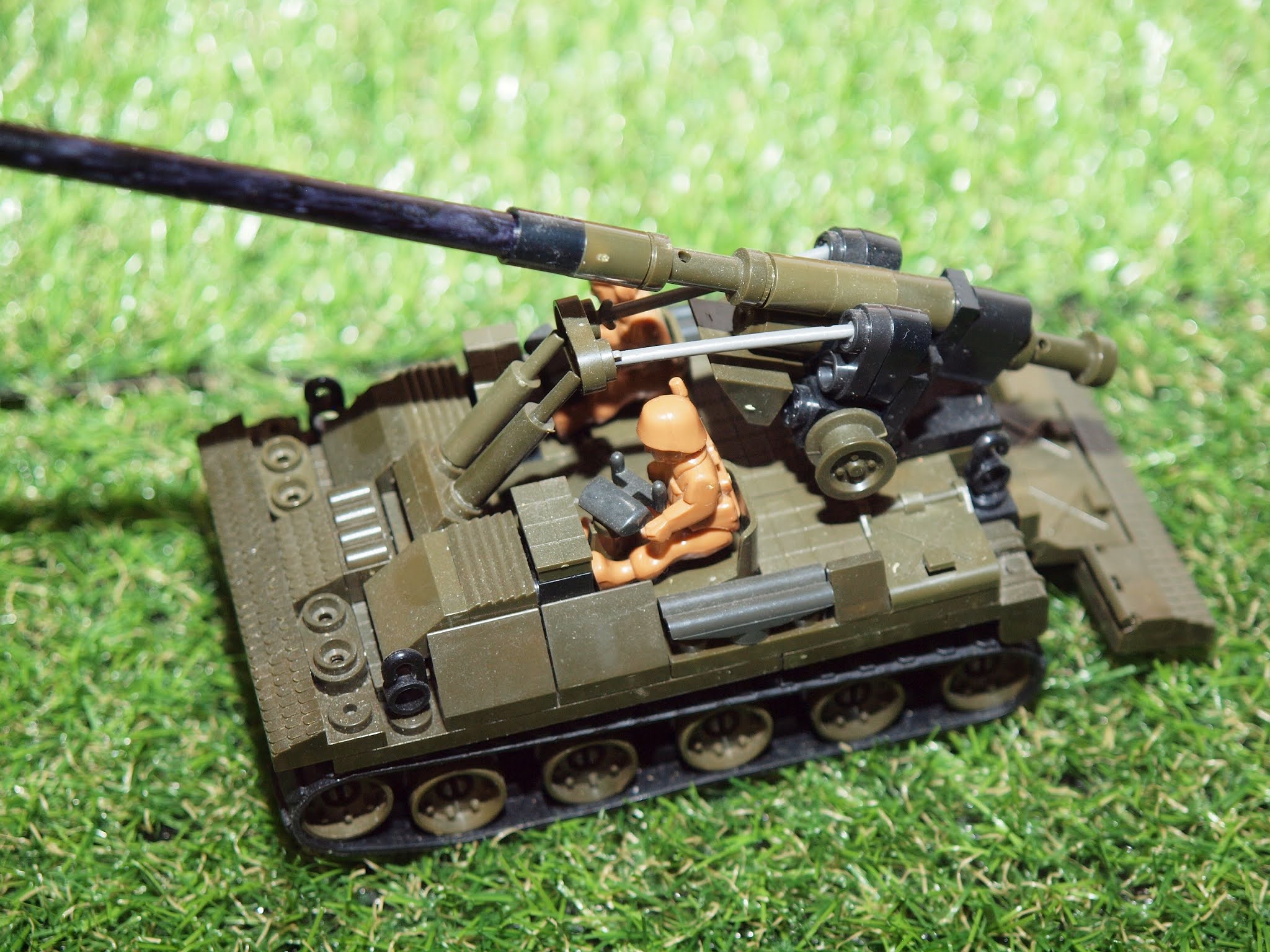 Entonces despues de mi andaduria con las orugas vi que nuestra infanteria de marina tenia un cañon autopropulsado muy particular... y lo construi... Esto me salio...